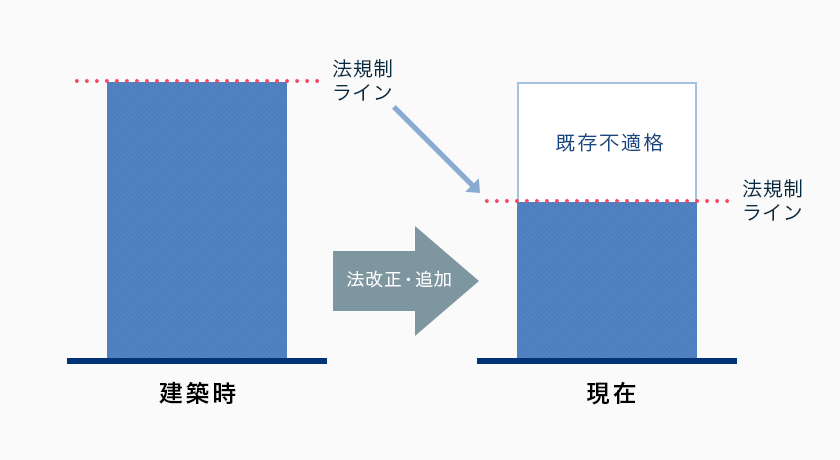 このような状態を「既存不適格」とよびます。